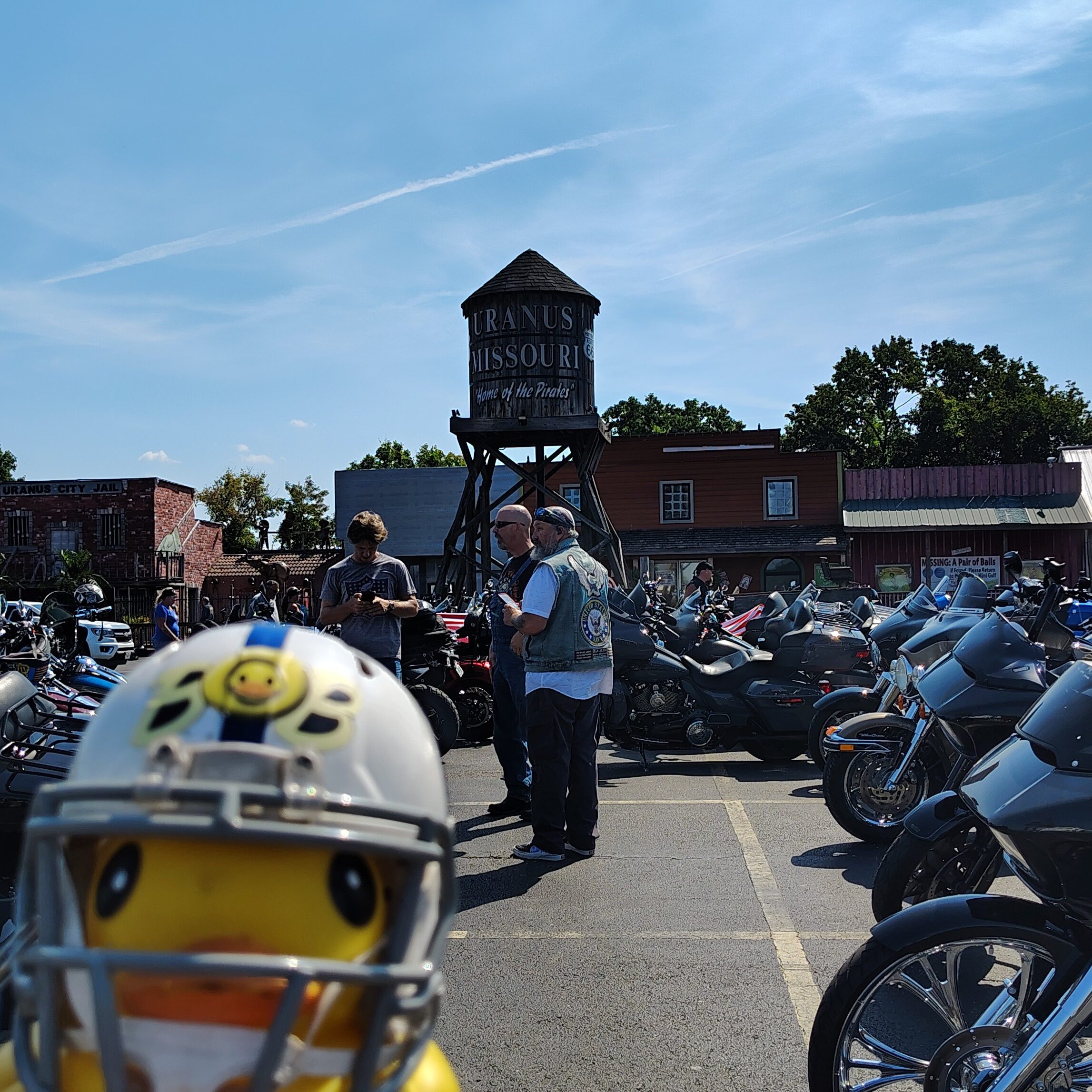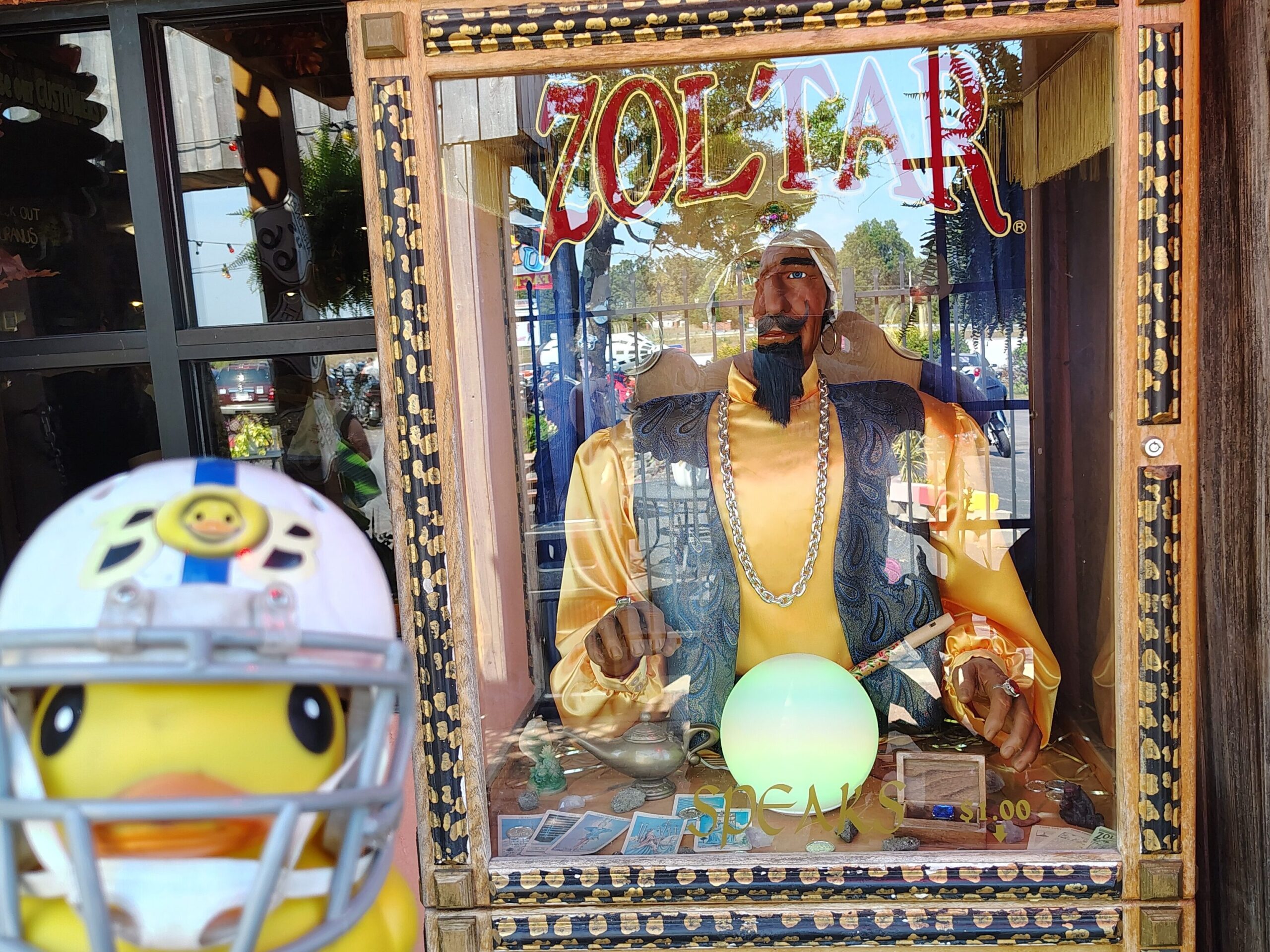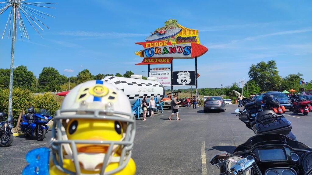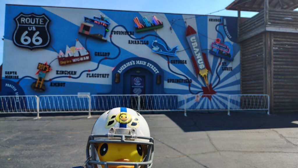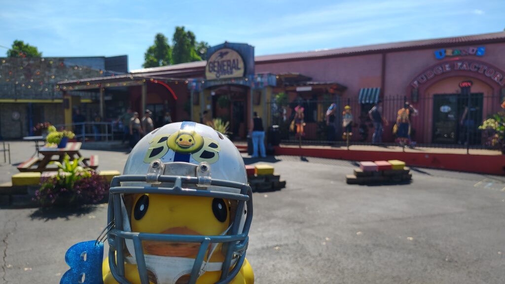As we glided eastward, my little rubber eyes spotted a sign that made my beak wiggle with glee, “Welcome to Christmas!”