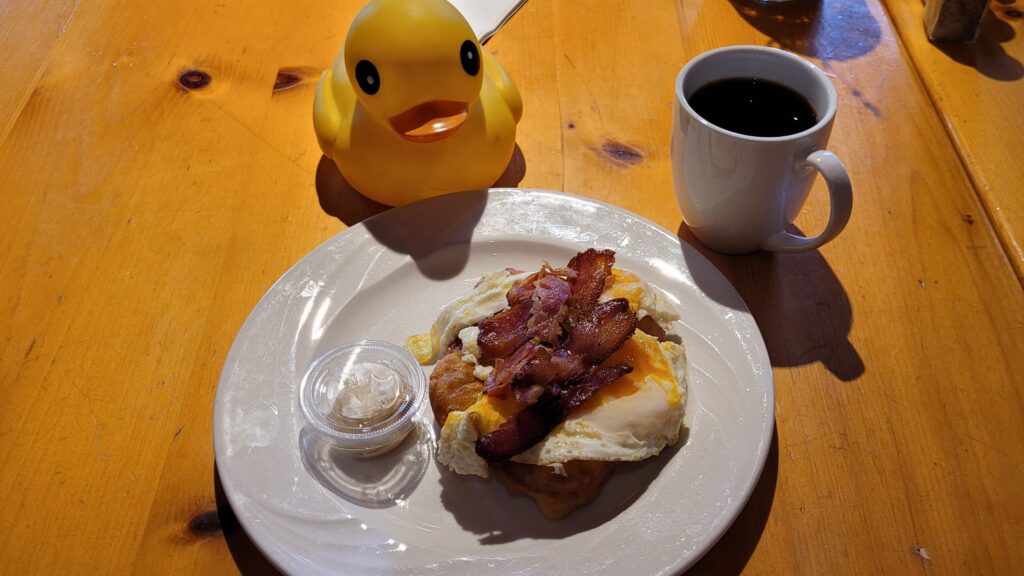 One of our choices was the delicious Bannock and Eggs! The bannock was fluffy, golden, and the perfect pairing for crispy bacon and fresh eggs. Every bite had them singing its praises.